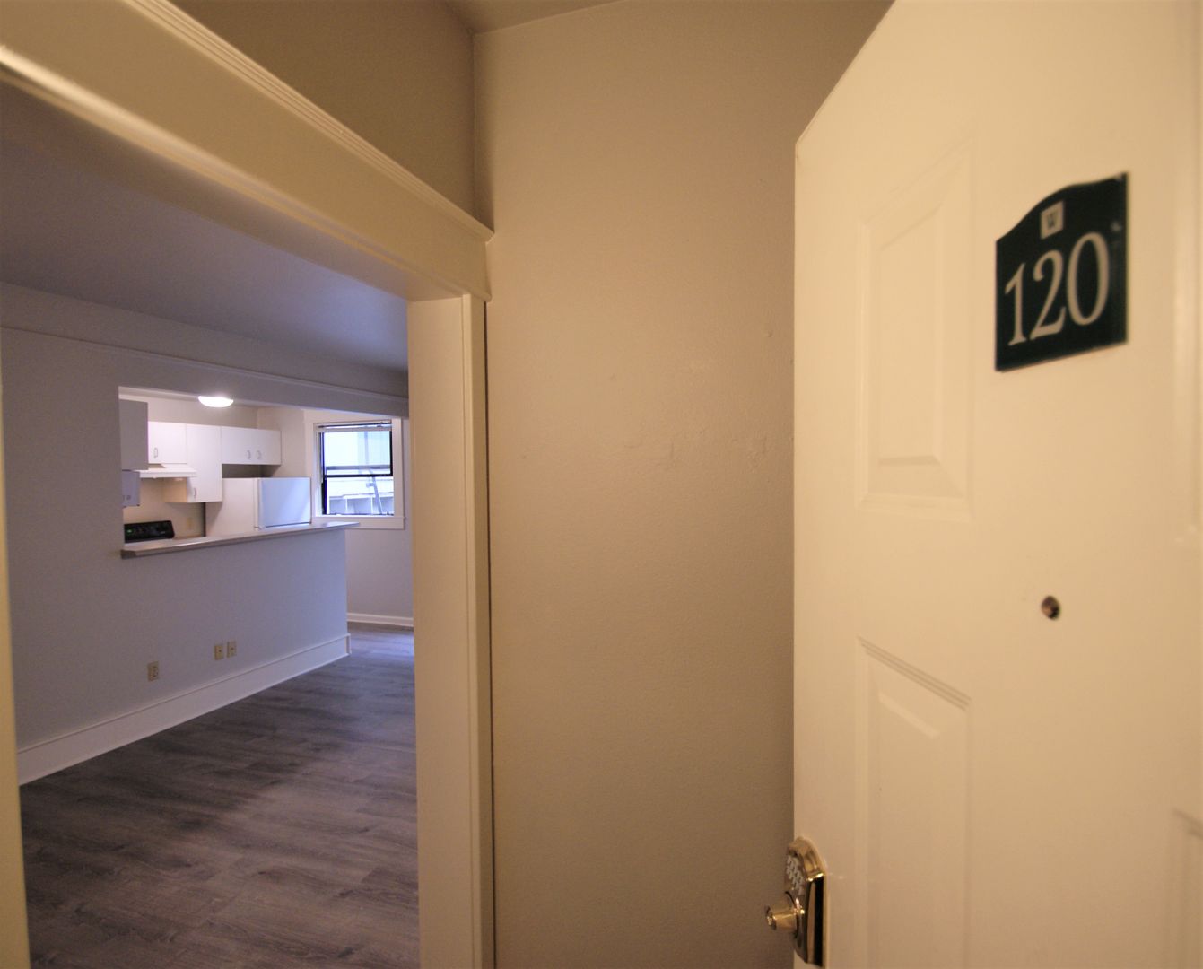 Unit 120 faces the courtyard and has new vinyl plank flooring throughout, a fresh coat of paint, a dishwasher and microwave. This unit is being offered on a 12-month Lease, $75 utility fee per person (water, sewer, garbage) with a 6 week rent concession. This is a no smoking building. Cats and small dogs are welcome.
