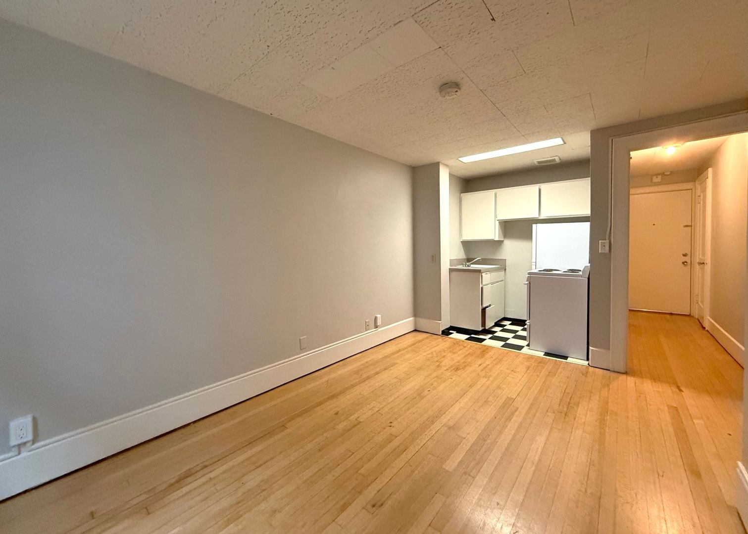 This quaint studio faces an alley for quiet in the city. It includes an eat-in kitchen and separate closet. We are offering this unit on a 12 month lease term with a 6 week rent concession.