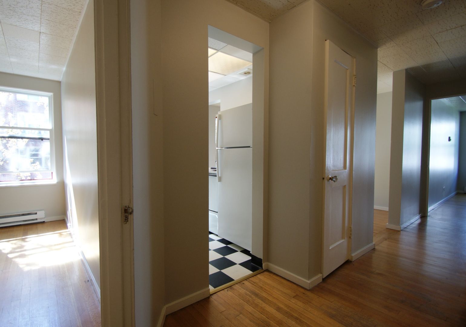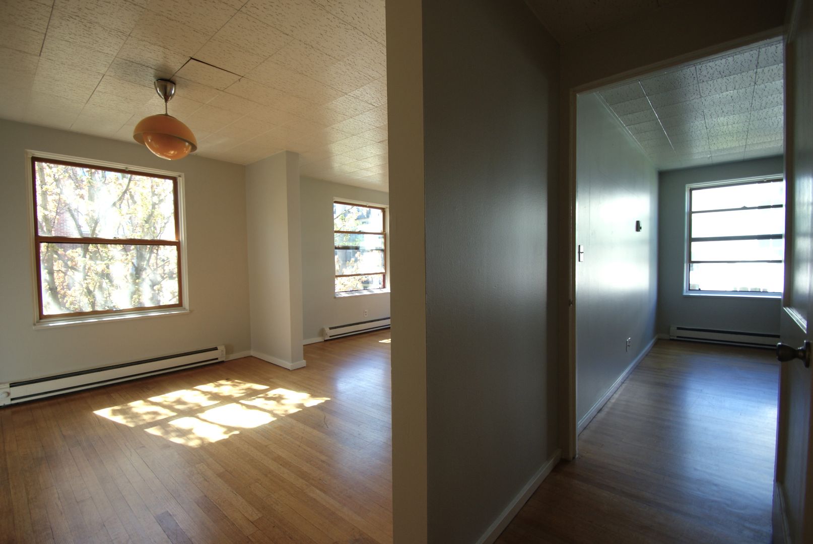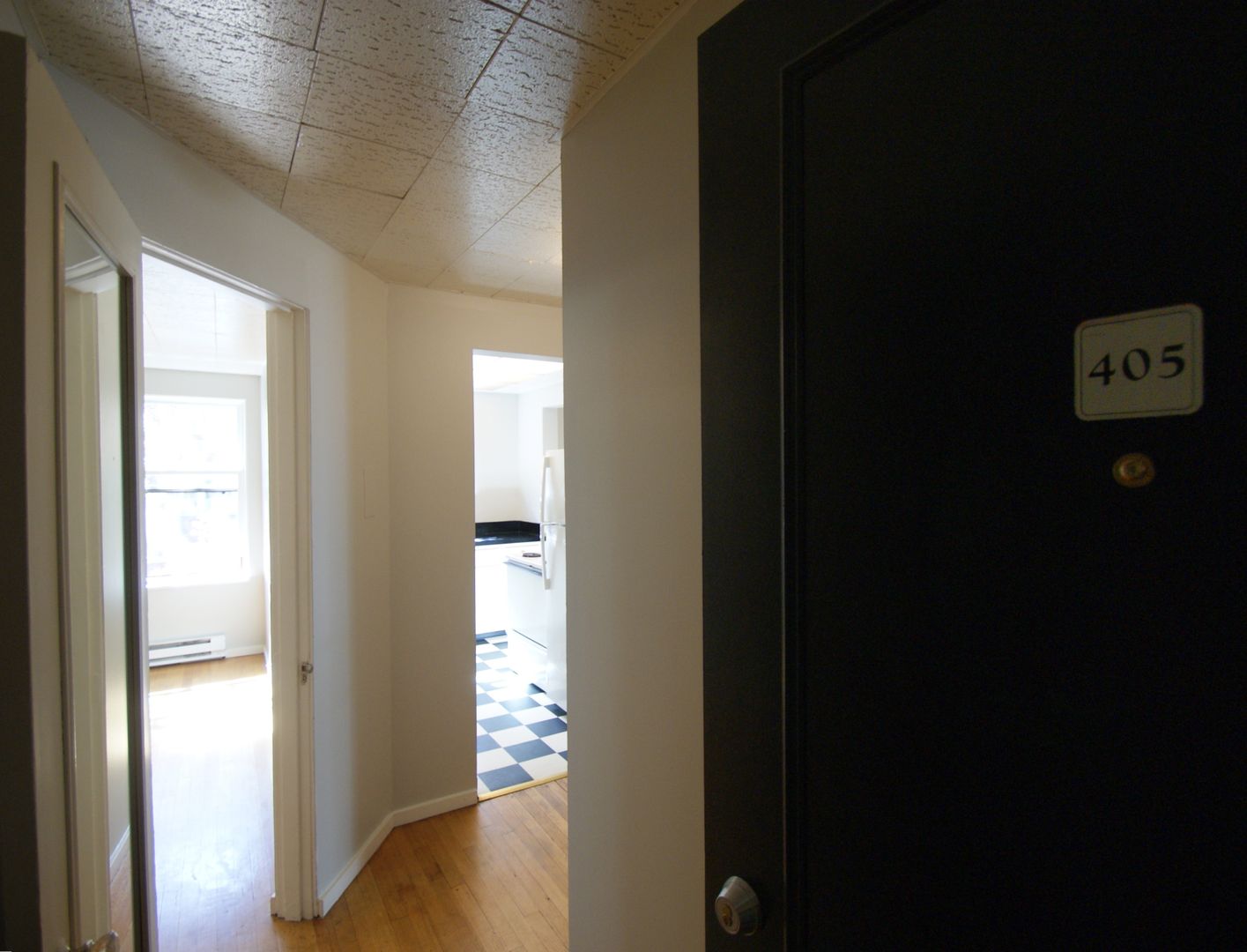 Unit 405 is a top floor 2bed/1bath situated on the Southwest corner of the building and receives great natural light. It features hardwood floors throughout, vinyl in the kitchen and bathroom, a walk-thru closet space and an efficient galley kitchen. We are offering this unit on a 12 month lease term with a 6 week rent concession.