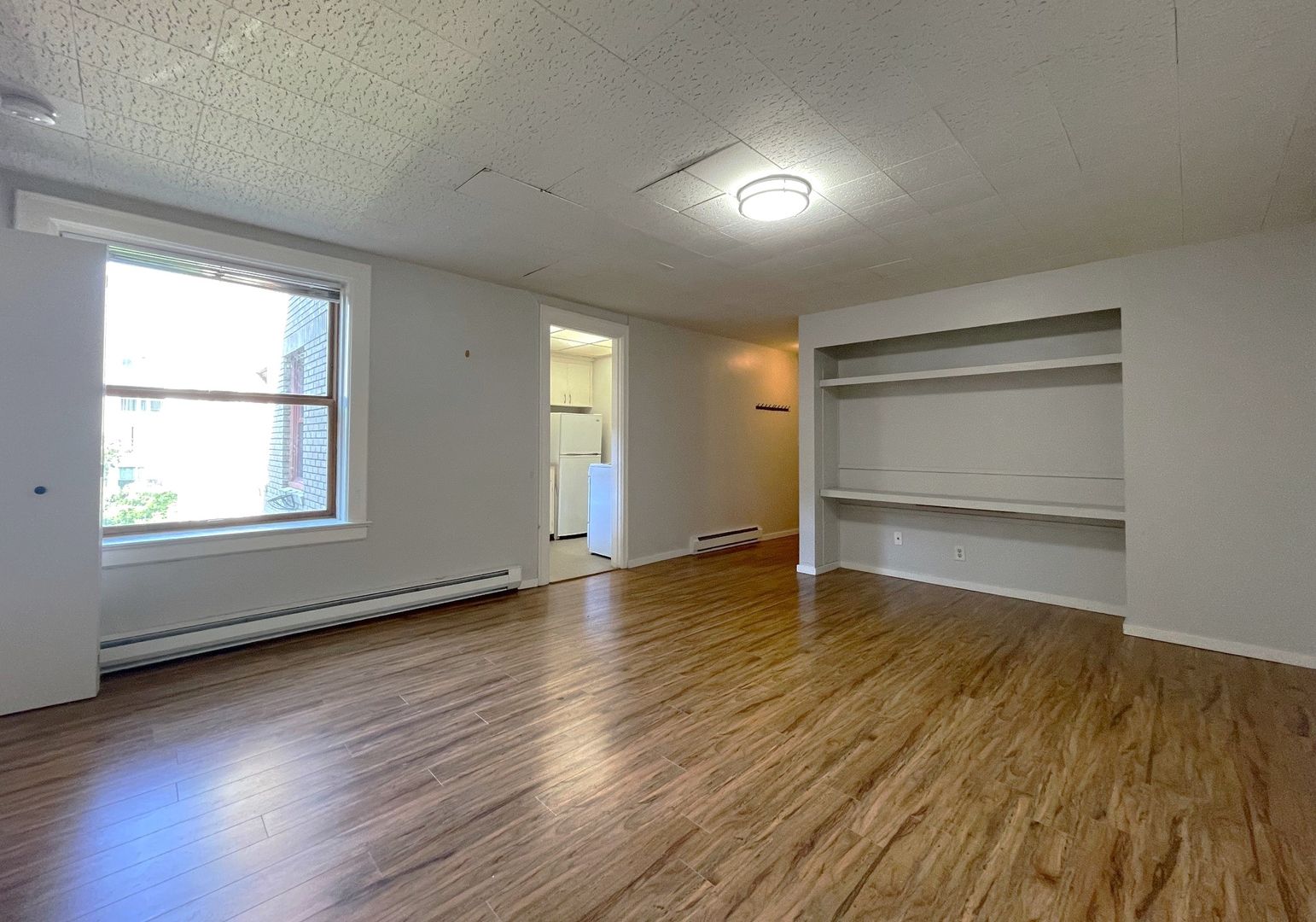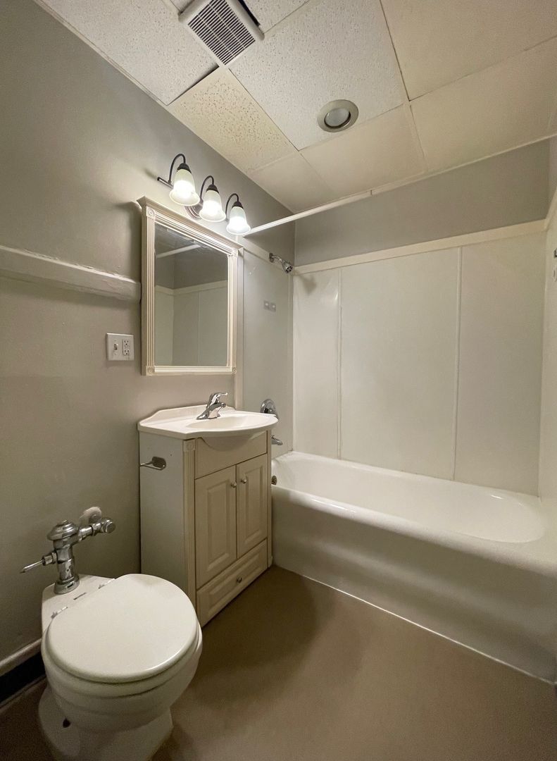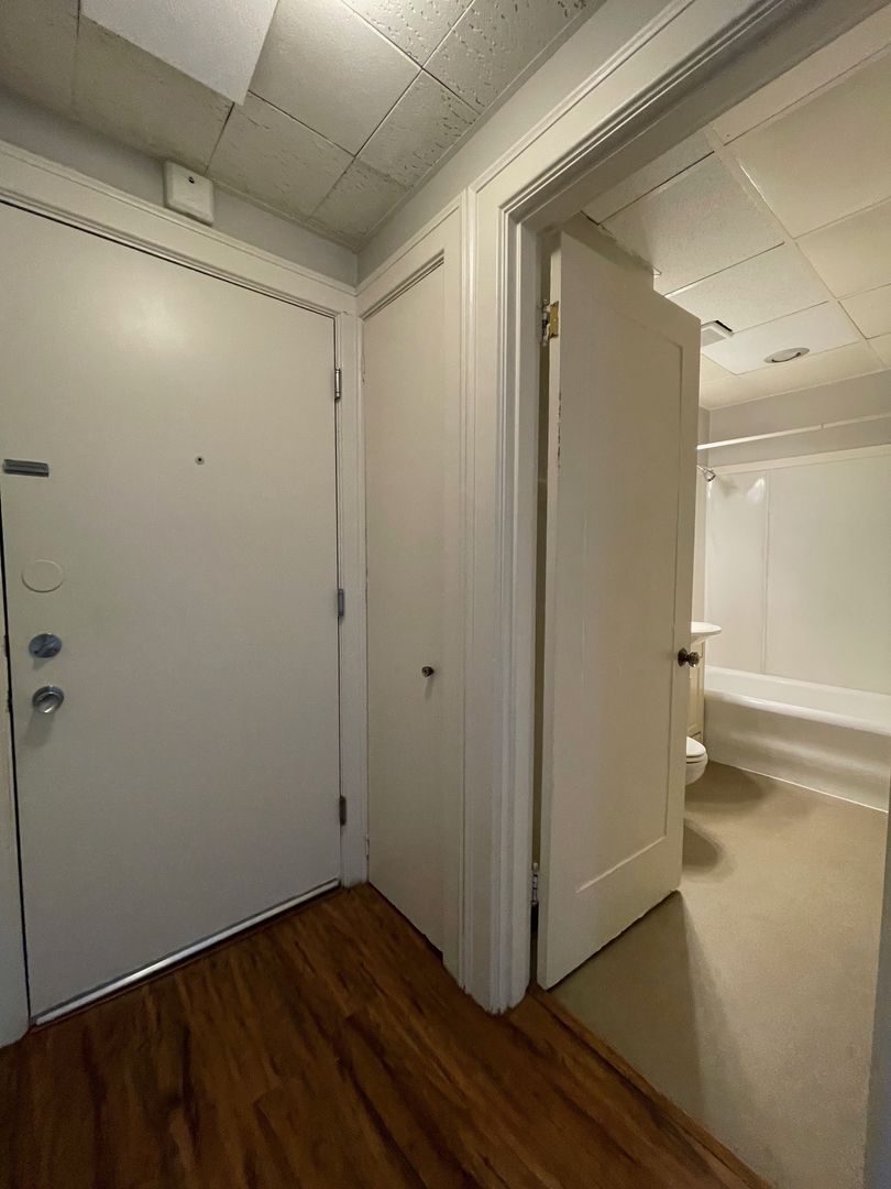 This unit is situated toward the middle of the building with a view of the entry courtyard which receives wonderful natural light. It features hardwood floors, an efficient galley kitchen and ample sized living room with built-in media center. We are offering this unit on a 12 month lease term with a 6 week rent concession.