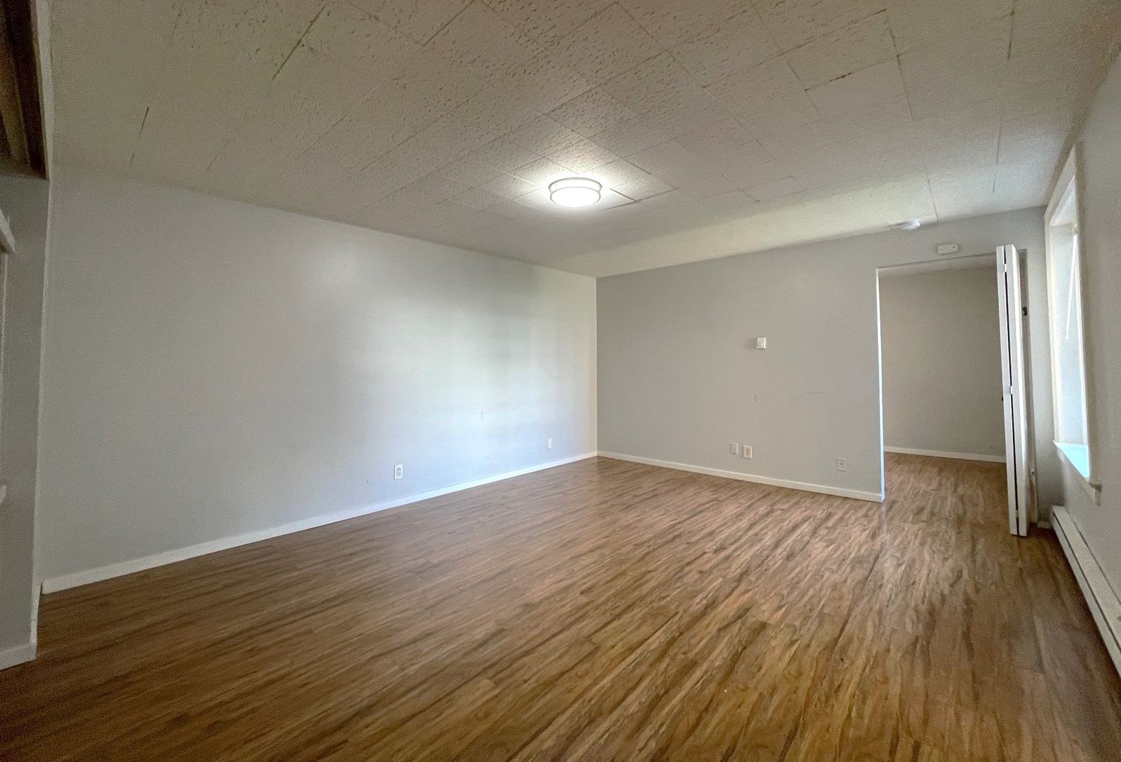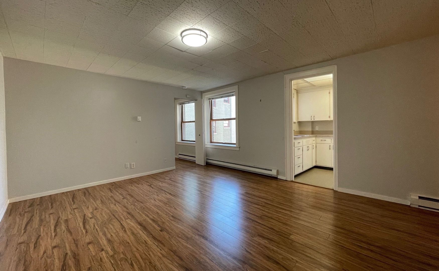At the time of application, we require payment of the $25 application fee per person and a $250 deposit that is then applied to the $1000 refundable security deposit upon approval. This building is no smoking, and cats and small dogs are allowed. There is a $75 utility fee per person for water, sewer, and garbage. There may be a reserved, garage parking space available for a fee.
