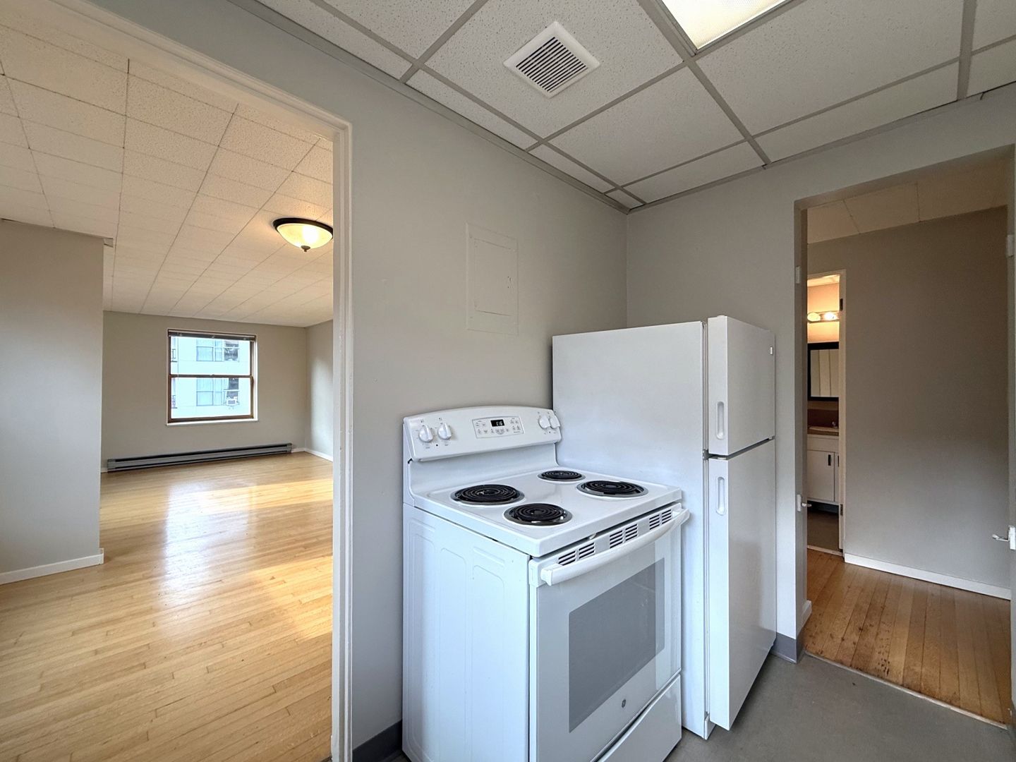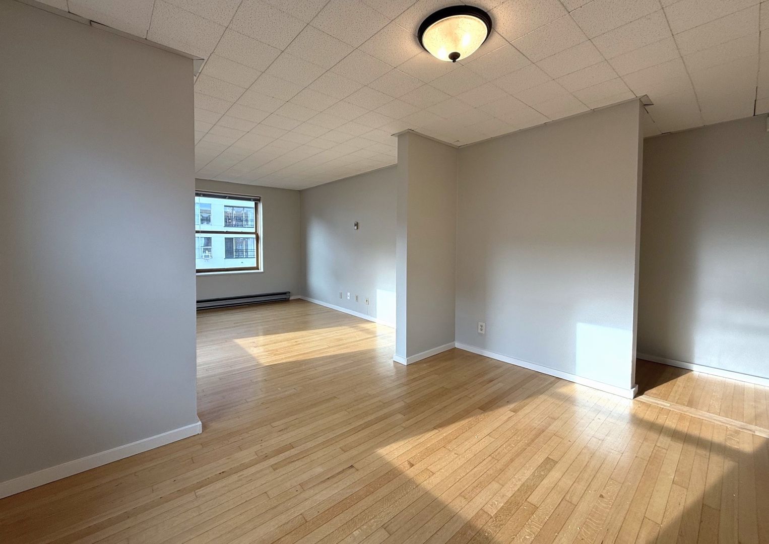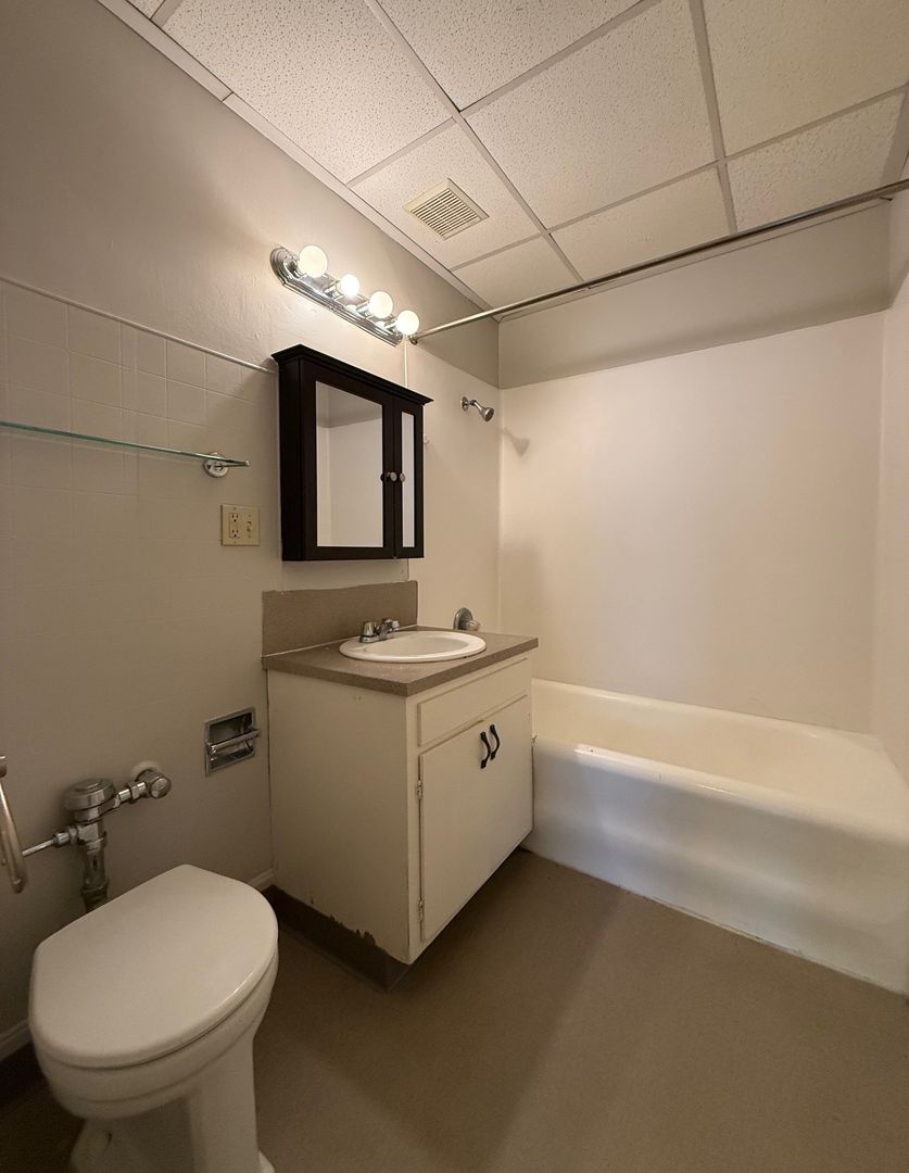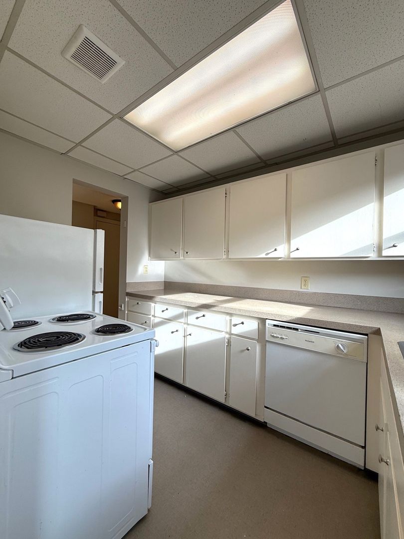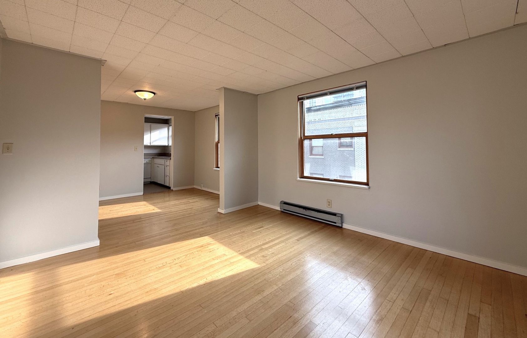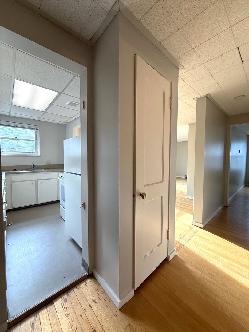 Unit 418 is a top floor corner 1 bedroom that faces the interior courtyard and receives great natural light. There are hardwood floors throughout, new vinyl in the kitchen and bathroom, a walk-in closet off the bedroom and a cozy L-shaped kitchen.
