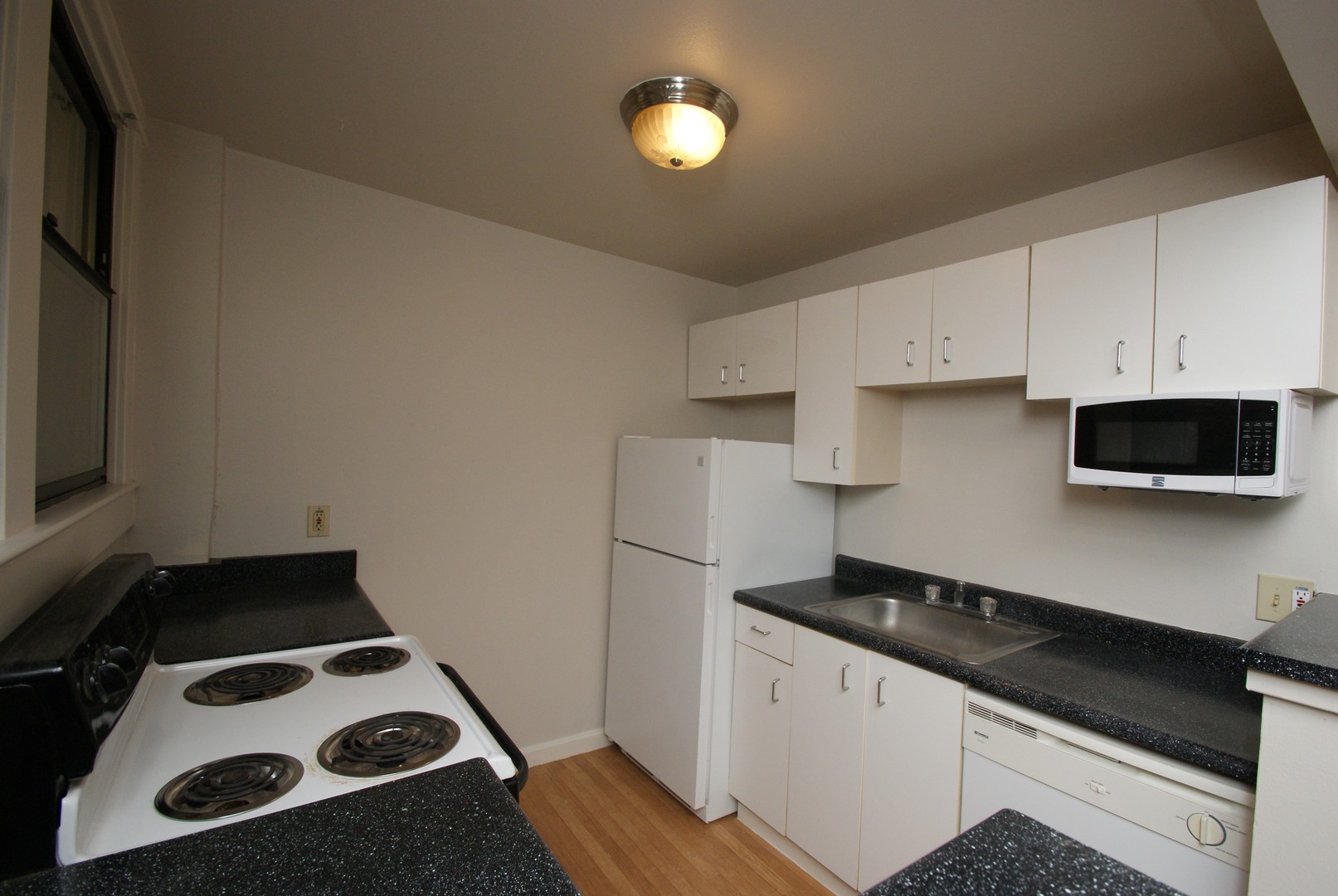 This top floor studio faces North and receives lovely natural light. There is new wood laminate flooring throughout, an efficient galley kitchen including full-size fridge and dishwasher. It is being offered with a 12 month Lease term with 6 week rent concession. There is a $75 utility fee per person for water, sewer, and garbage.