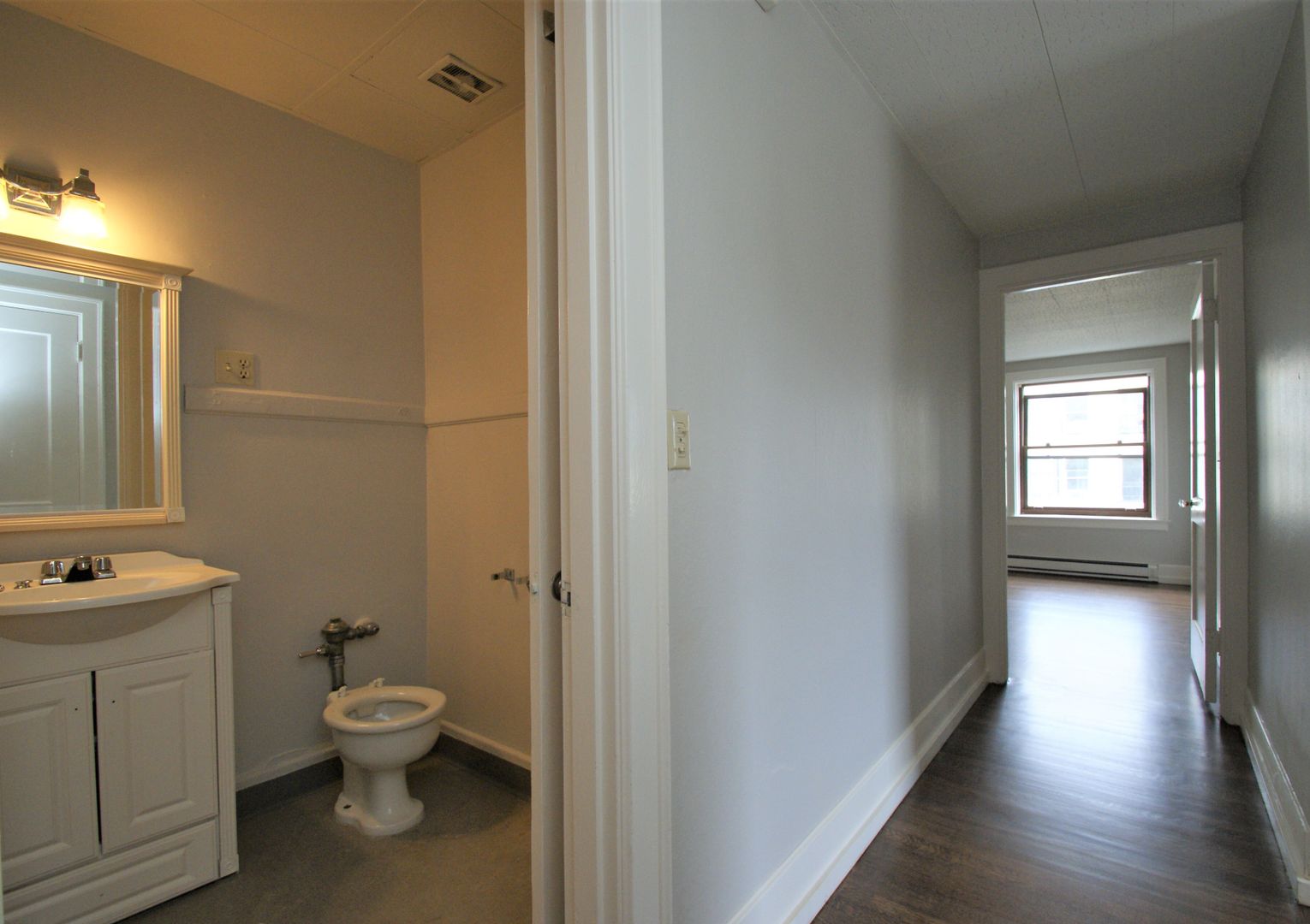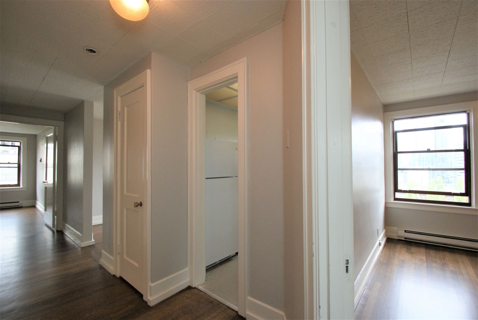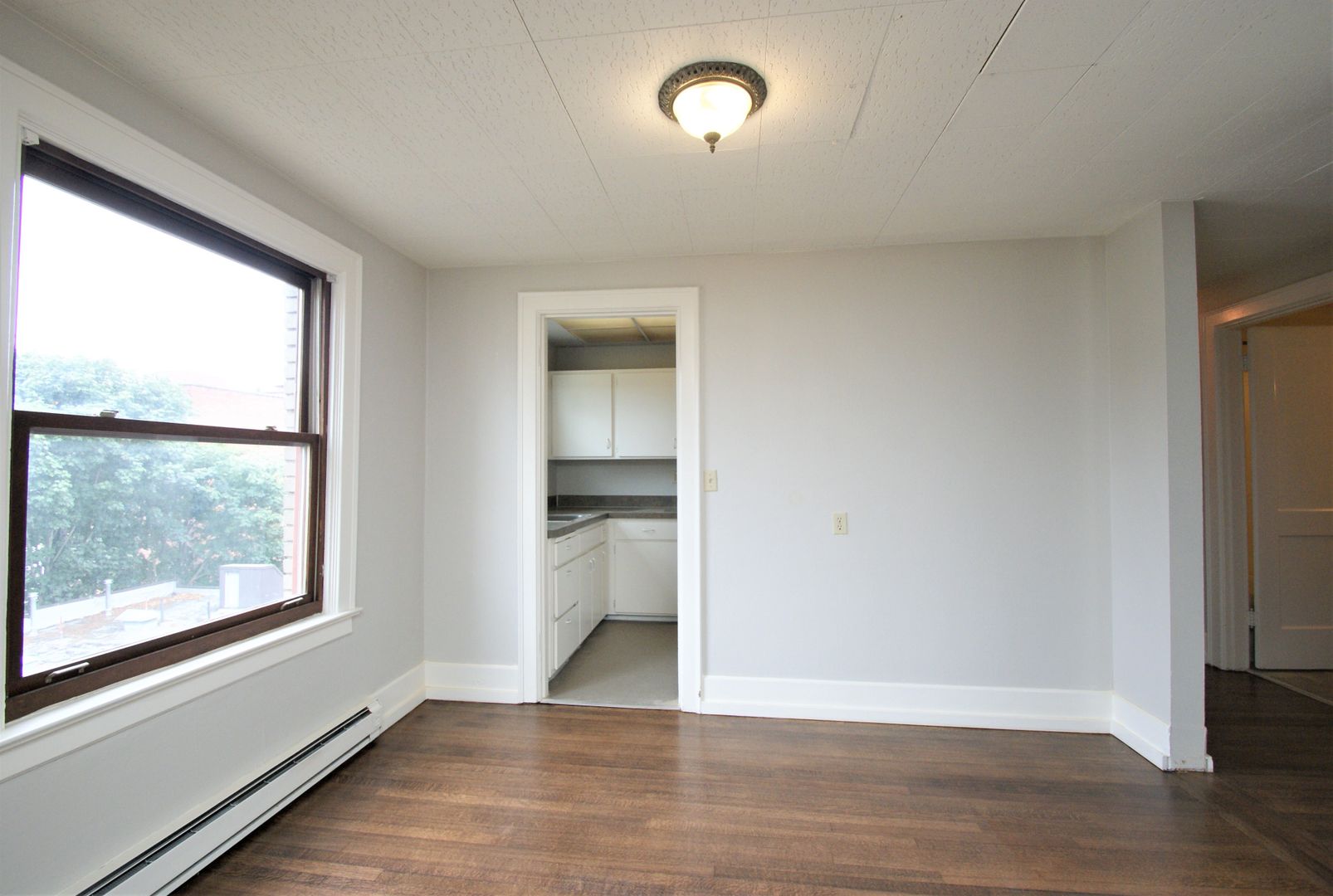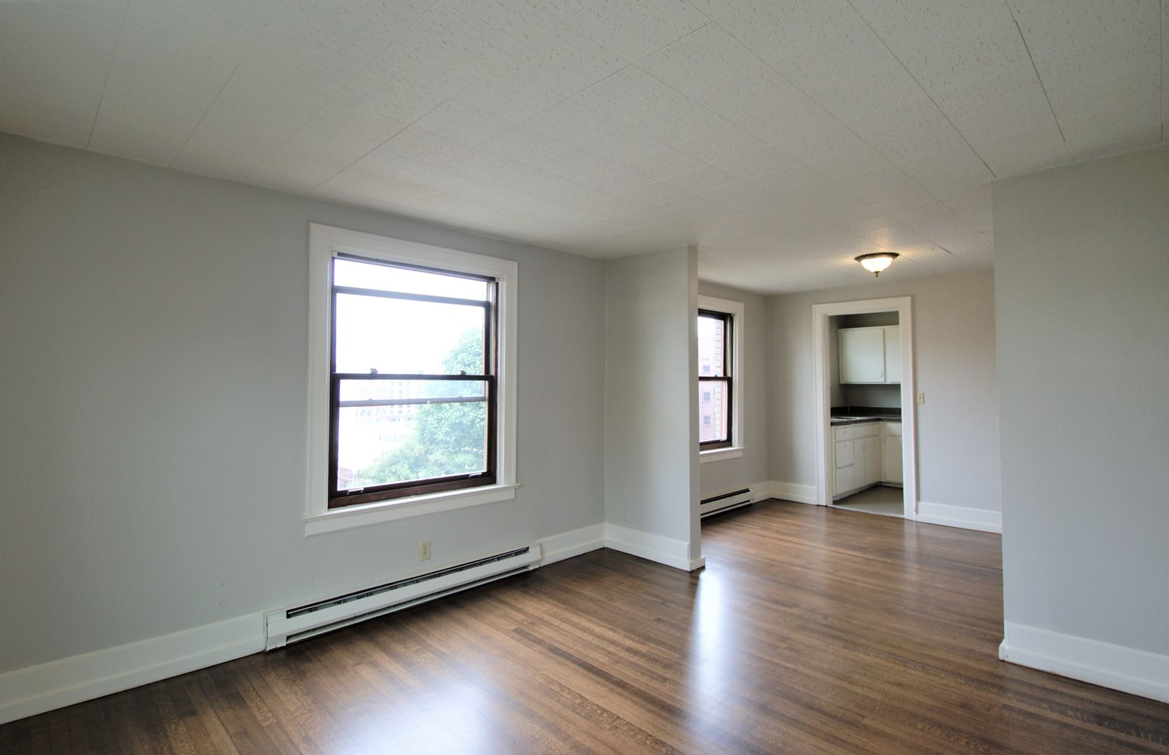 This top floor Northwest corner 2bed/1bath apartment has refinished hardwood floors, an ample sized dining area, a spacious living room and extra large storage closet. There is a $75 utility fee per person for water, sewer, and garbage. We are offering this unit on a 12 month lease term with a 6 week rent concession.