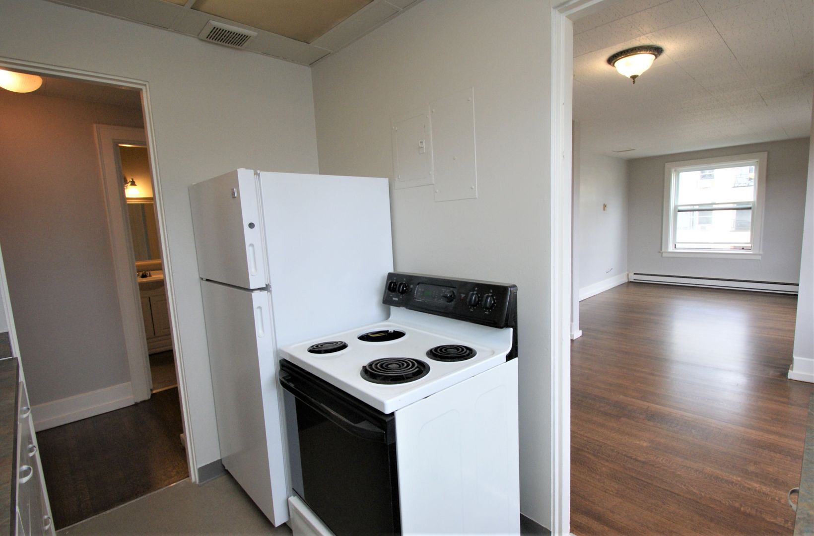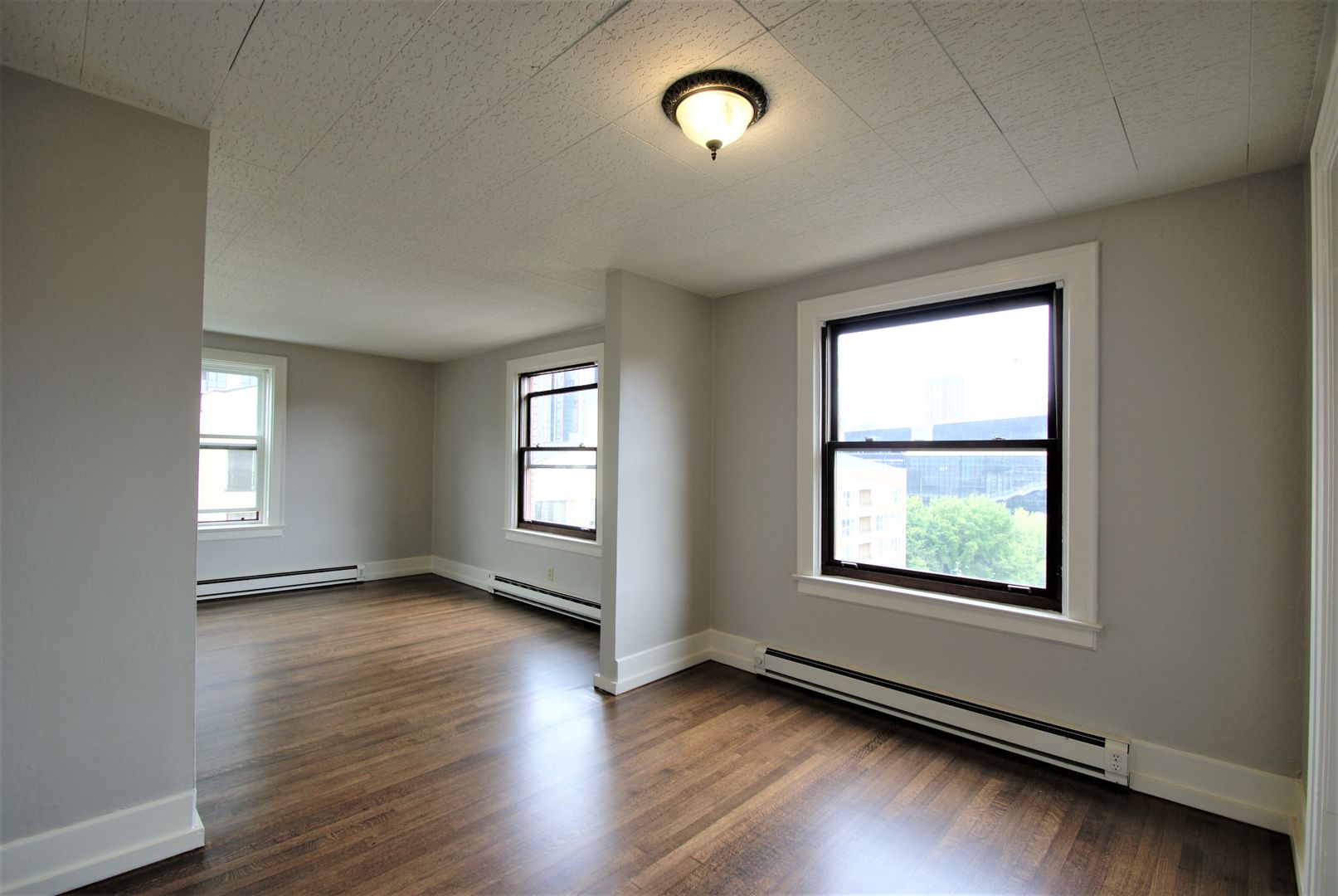 At the time of application, we require payment of the $25 application fee per person and a $250 deposit that is then applied to the $1000 refundable security deposit upon approval. This building is no smoking, and cats and small dogs are welcome.